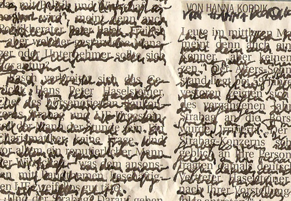 Zeitungspapier, Tinte / 9 x 13 cm / 2009